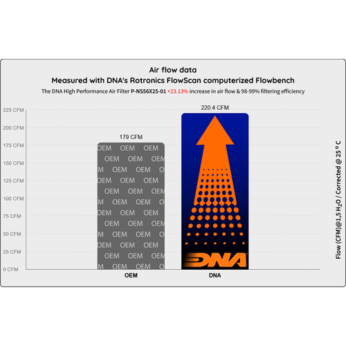 • The flow of this new DNA filter is +23.13% more than the stock filter!