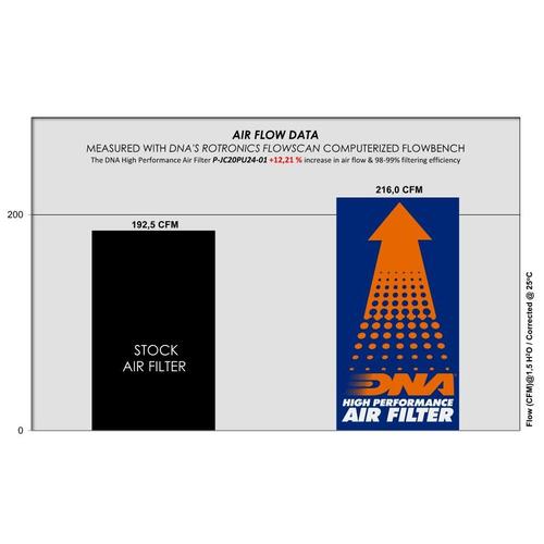 • The flow of this new DNA filter is +12.21% more than the stock filter!