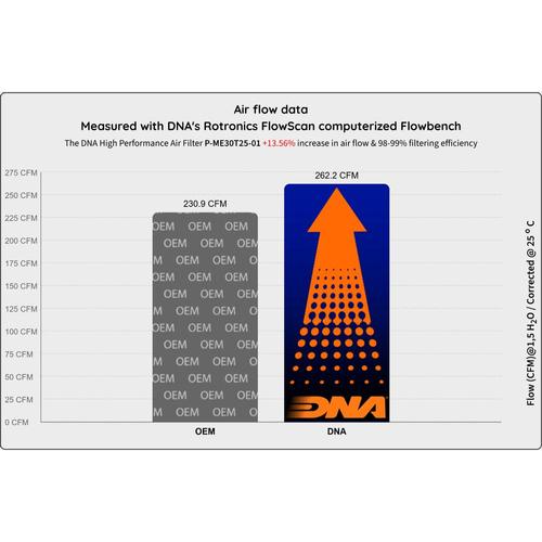 • The flow of this new DNA filter is +13.56% more than the stock filter!