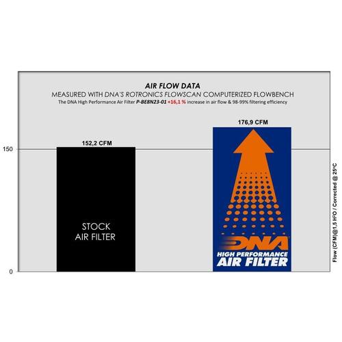 - The flow of this new DNA filter is +16.10% more than the stock filter!
